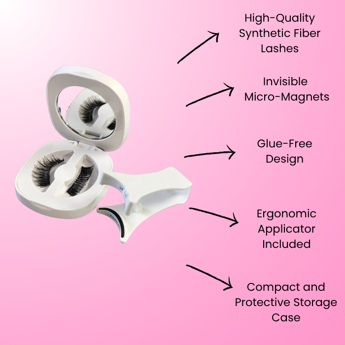 Enjoy hypoallergenic lashes that provide long-lasting comfort without discomfort. Say goodbye to glue and irritating lashes, your eyes will be pampered all day long.